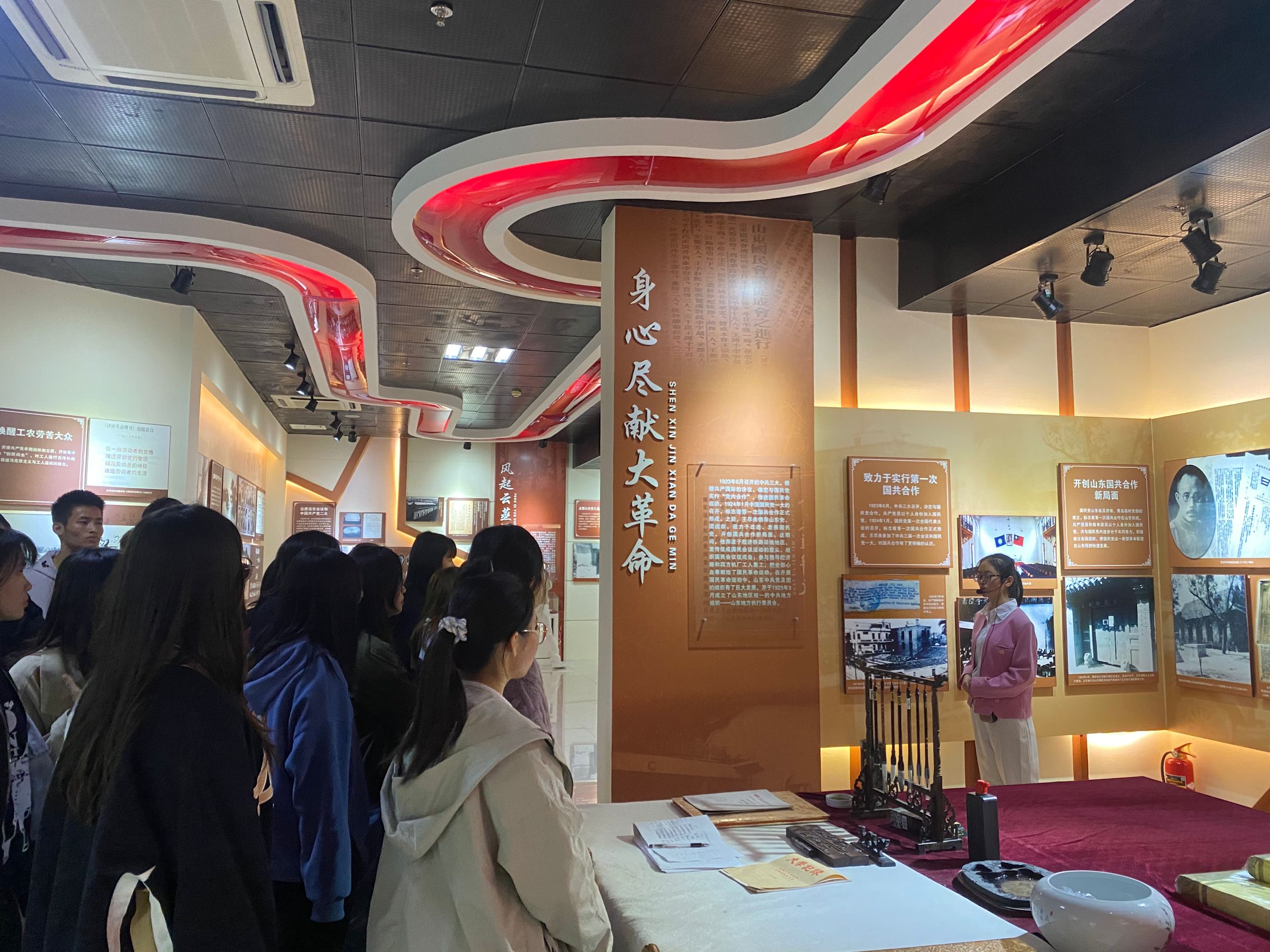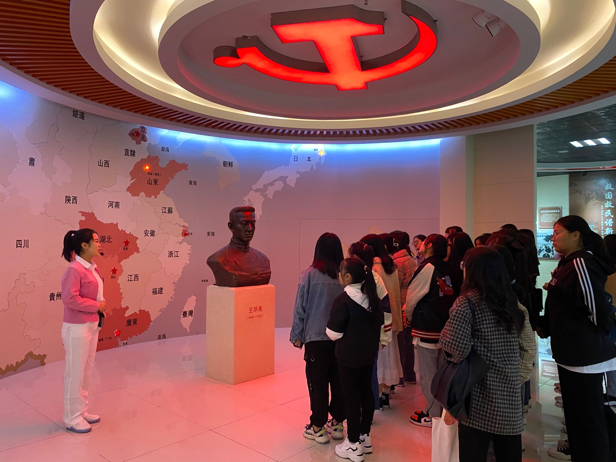 为弘扬革命传统、传承红色文化,加强新生入学教育,我校于10月12至11月6日期间在全校范围内开展新生参观王尽美馆和校史馆活动。校礼仪讲解团刘世佳等19位同学利用课余时间向大家详细介绍王尽美同志革命生涯和我校光辉校史,为全校2600名2020级新生带来了一场场精彩讲解。