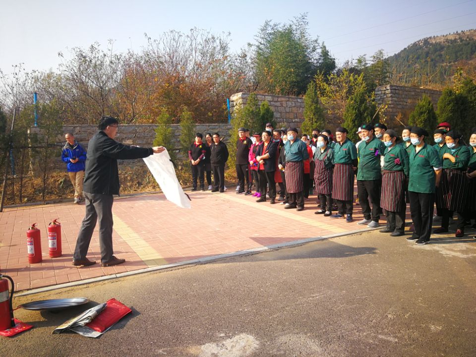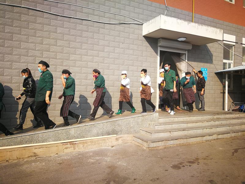随着警报声响起,引导员在指定楼层,指导员工沿疏散通道快速撤离,全体员工弯着腰,捂住口鼻,沿墙壁快速、有序撤离到食堂西南侧安全地带,随即由食堂经理清点报告人数。疏散完毕后,由安全处王宝军同志从火灾的预防、火场自救及逃生方法、灭火器和灭火毯的正确使用等消防安全基本常识进行了现场示范讲解,并演示了灭火器操作步骤和使用方法,灭火毯如何扑灭油锅起火的规范操作程序,指导员工进行了灭火器、灭火毯的现场灭火演练。总务处王利处长对演练过程进行了总结讲评,重点强调了保护好自身安全,强化食品安全和消防安全责任意识,提高管理和服务水平,充分肯定了演练的意义和作用。