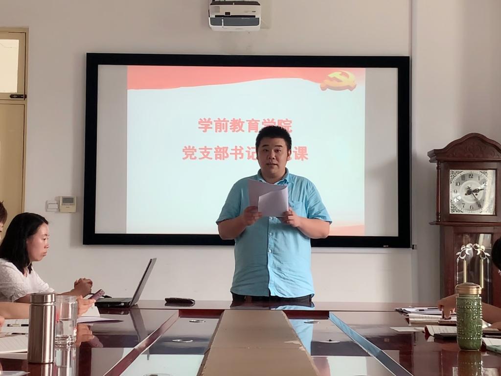 6月16日中午,学校党委委员、副校长崔建深入学前教育学院,在学前楼317会议室为全体党员讲授专题党课,党课由学前教育学院党总支书记马洪秀主持。
