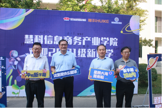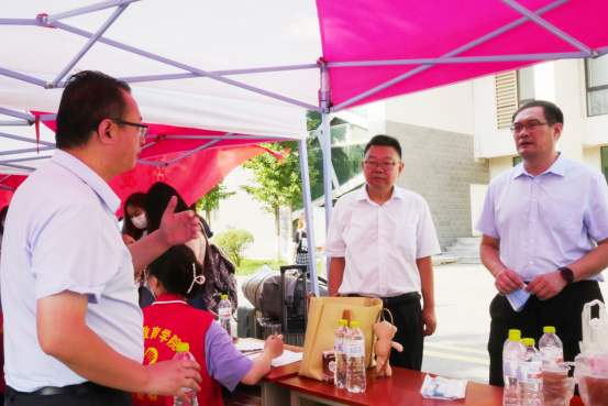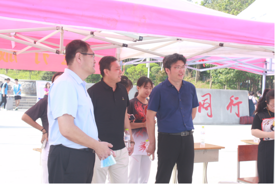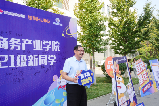 学校领导亲临迎新现场,与师生家长亲切交流。