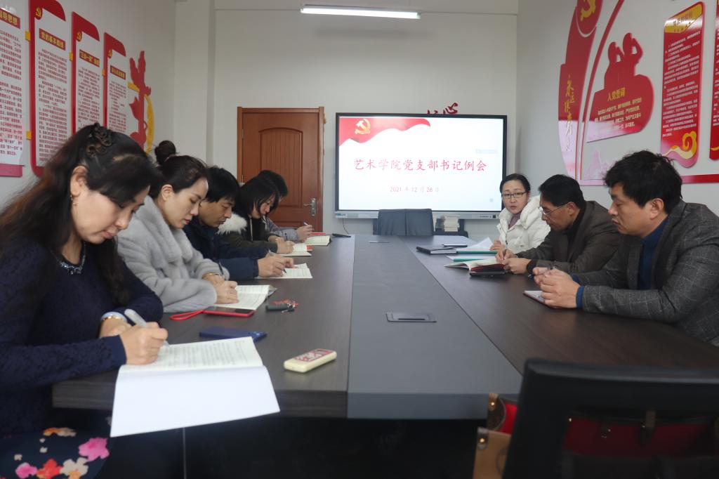 根据学校党委工作要求,12月28日,我校党委副书记成刚到联系点艺术学院调研基层党建工作,参加艺术学院党支部书记例会。学院党总支成员、支部书记参加会议,会议由学院党总支书记俞茂主持。