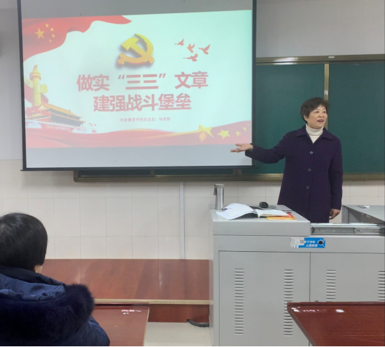马书记在会上以《做实“三三”文章 建强战斗堡垒》为题,从“三抓三聚”、“三亮三强”、“三创三促”几个方面梳理了学院一年来完成的重点工作,指出学院通过开展党史学习教育、我为群众办实事、三下乡等活动持续推进党建高质量发展,创造出十七个“第一次”的工作成果。