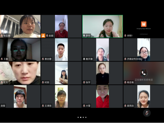 晚上八点,学前教育学院召开全体班主任线上会议,学院党总支副书记陈玲玲向班主任提出具体要求:一是强化责任意识,尽职尽责工作。二是始终关爱学生,形成“我们在一起”的师生效应,加强正面引导,关注学生学习、生活细节,及时解决学生诉求,畅通沟通渠道;三是熟悉校园突发事件处置流程。