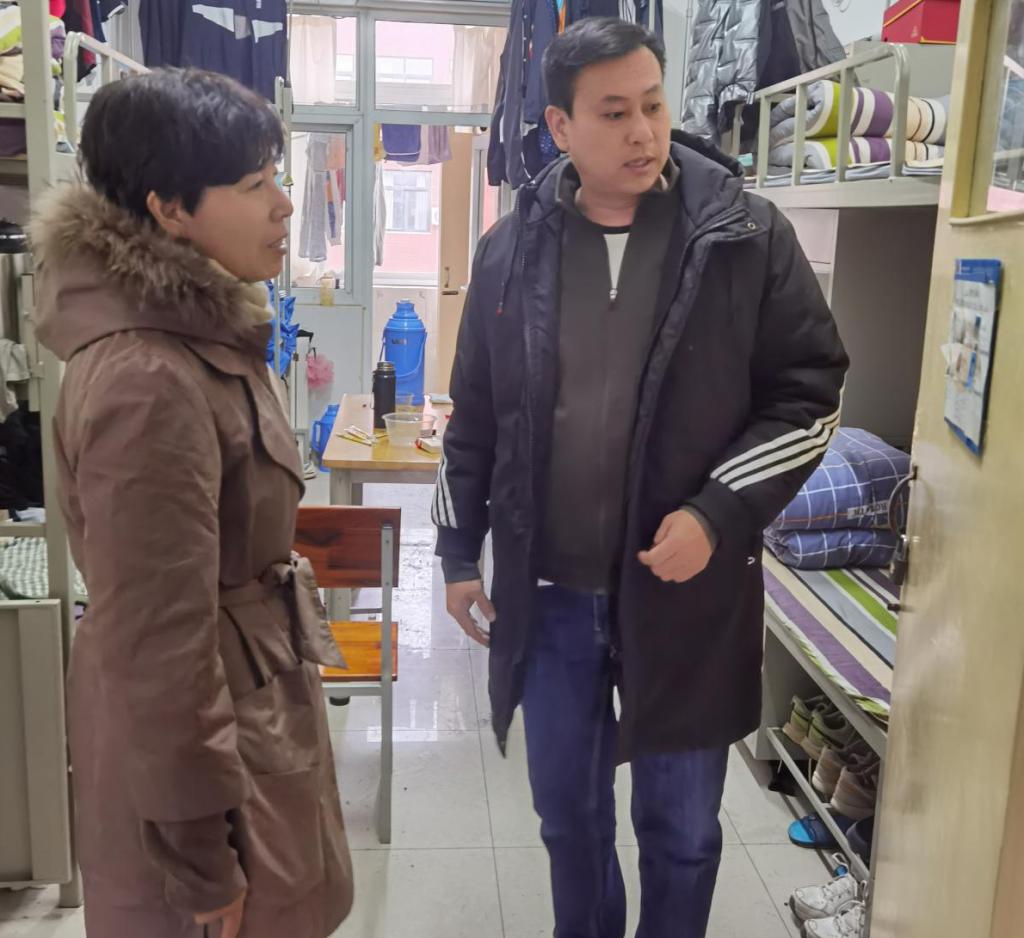 党总支书记王建英与院长张春波深入学生宿舍,对宿舍消杀及通风落实情况进行检查。