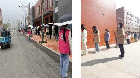当好核酸检测服务员。每天上午8:30-11:00,党员同志和入党积极分子主动到核酸检测现场维持秩序,提醒教职工和学生佩戴口罩,保持1米以上的安全距离,并帮助医护人员登记信息,发放检测凭证等,积极配合医护人员,耐心做好核酸检测工作,确保不落一人。
