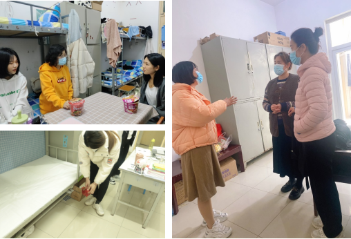 做好学生公寓守护员。党员同志在疫情防控中践行初心使命,把党的温暖和关怀带进学生宿舍。他们排查安全隐患,及时了解学生思想动态、生活环境和学习情况,了解同学们存在的困难并给予帮助,特别叮嘱学生在特殊时期要提高疫情防控意识,严格遵守学校疫情防控的相关要求,自觉进行每日体温检测,做好每日宿舍的开窗通风、卫生清洁、消毒杀毒等工作,助力学院防疫工作扎实开展,筑牢第一防线。