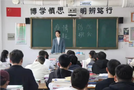 当好疫情防控宣传员。党总支书记侯艳红首先带头走进课堂,为学生普及疫情防控相关知识,引导学生们正确认识疫情,知道如何从自身做起做好疫情防控,让学生调整心态,重视科学,不恐慌,不信谣,不传谣,做好自我保护,自我管理,以健康的身心面对特殊时期,以饱满的精神状态投入到学习生活中去。