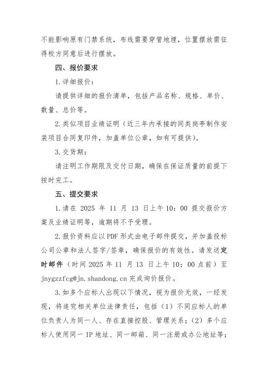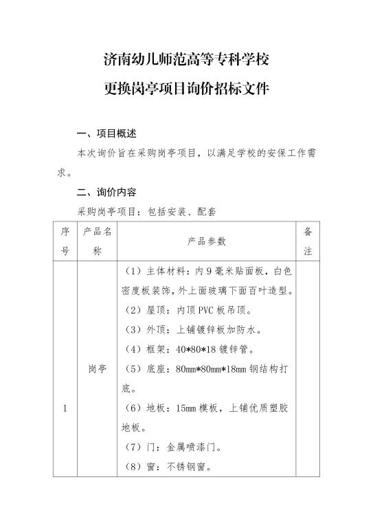 济南幼儿师范高等专科学校更换岗亭项目询价招标文件