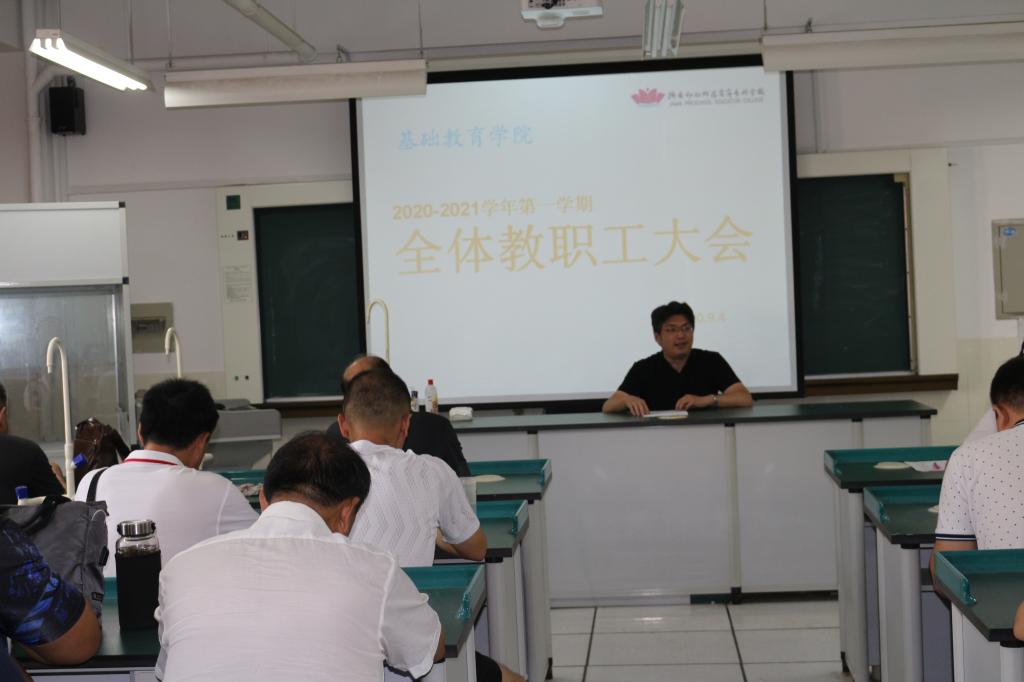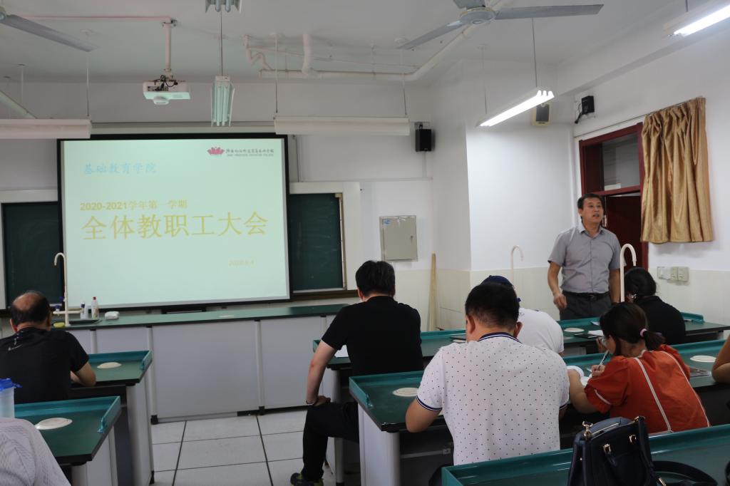 为确保新学期工作正常有序开展,为新学期开好头、起好步,基础教育学院于9月4号上午10点在学院会议室召开全体教职工大会,会议由学院负责人王蕾主持。