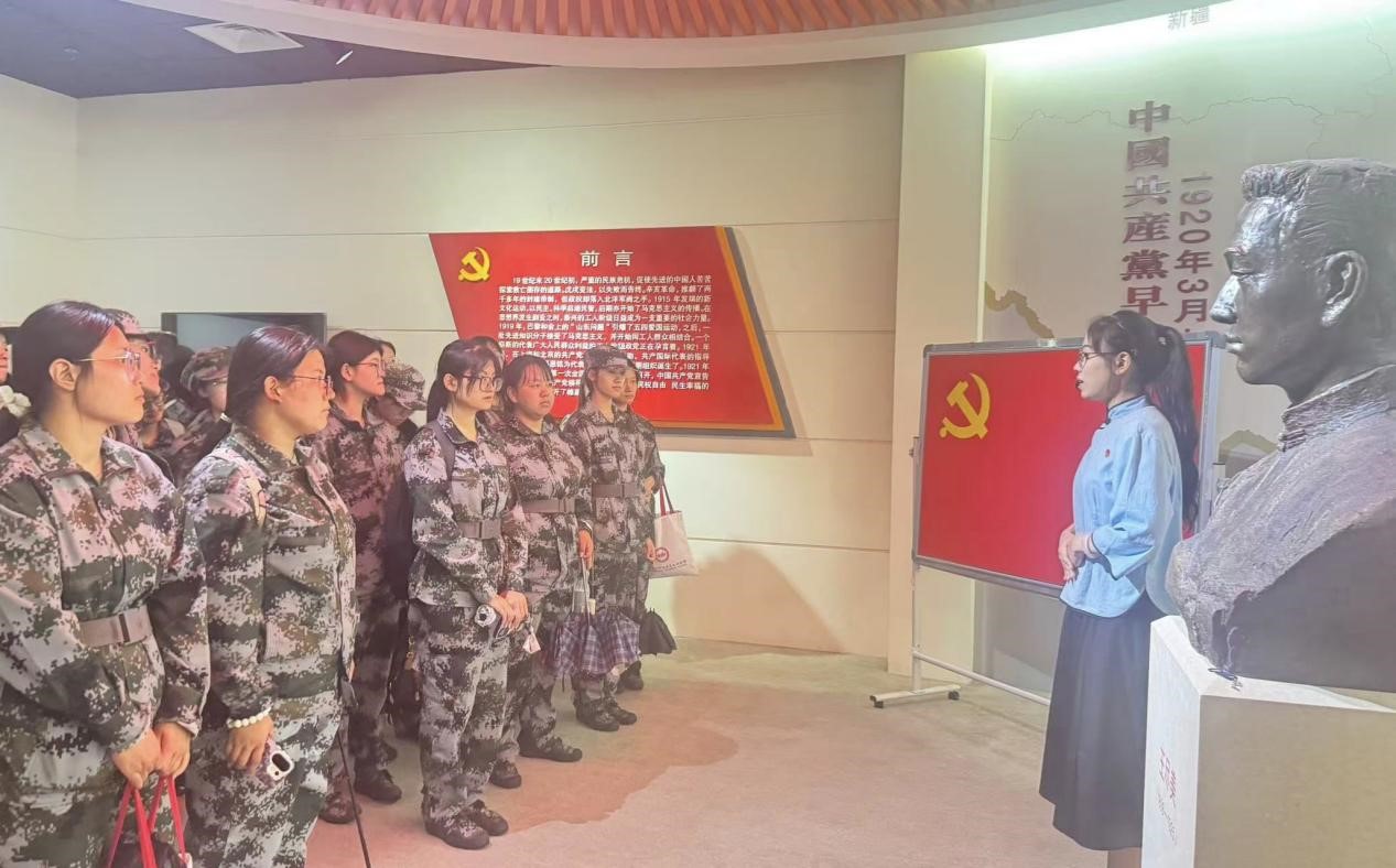 在党史馆内,宣讲团成员依托展馆内珍贵的历史图片、文献资料,为新生们系统、生动地讲述了王尽美同志的革命事迹和“尽善尽美唯解放”的革命信仰。