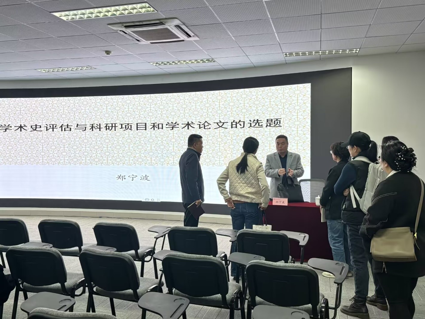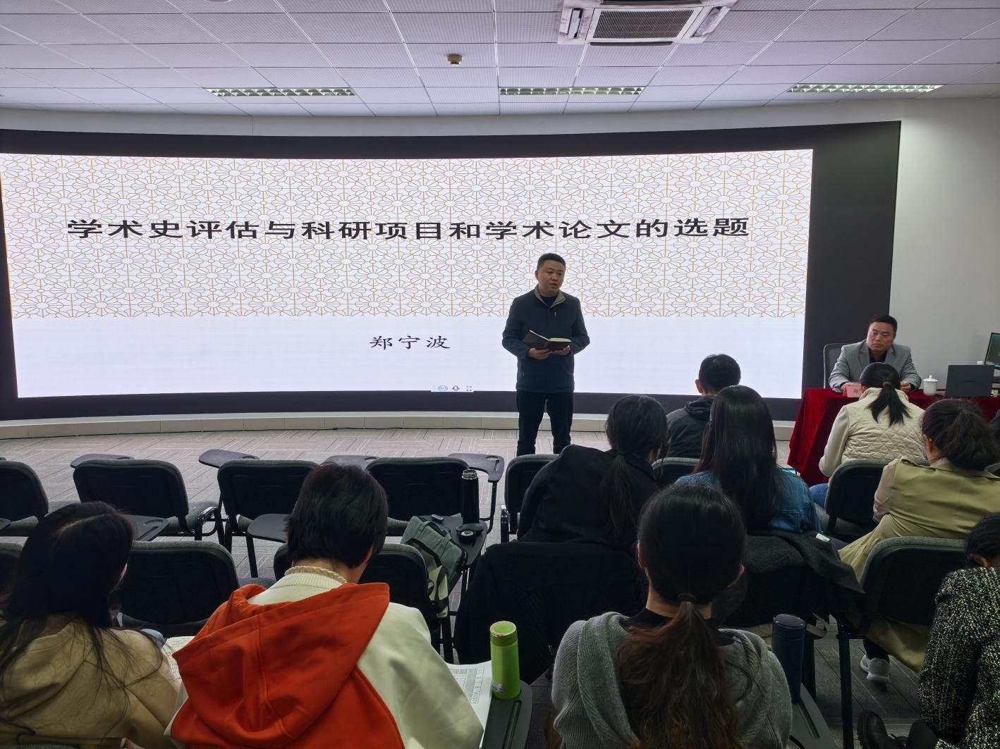 为进一步提升科研项目与学术论文的质量水平,并切实提升教师学术研究的选题能力与创新意识,10月21日上午,科研处特邀郑宁波教授在思政中心数字展厅做了主题为“学术史评估与科研项目和学术论文的选题”的讲座。科研处处长王君、副处长王沪红、张祥华,各学院分管科研工作的副院长,各学院教师代表以及我院全体教师参加了此次活动。会议由学院党总支书记张大明主持。