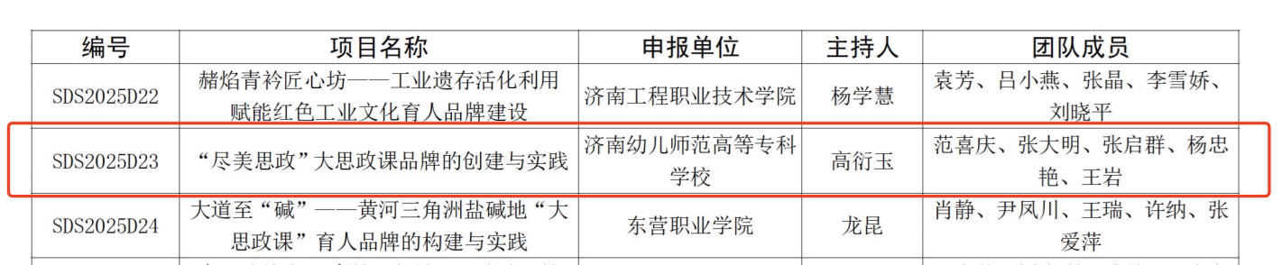 此次全省思想政治教育教学改革项目申报评选工作,经各市各高校推荐、专家严格评审,最终确定206项立项项目。我院此次获批的“大思政课”建设项目,聚焦新时代立德树人根本任务,旨在通过深入挖掘红色校史资源,创建具有辨识度和影响力的“尽美思政”品牌。项目将致力于创新教育教学方法手段,不断提升思政引领力,为培养担当民族复兴大任的时代新人贡献力量。