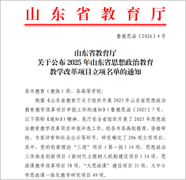 近日,2025年山东省思想政治教育教学改革项目立项名单正式公布,王尽美思政教育学院副院长高衍玉主持申报的 《“尽美思政”大思政课品牌的创建与实践》项目成功获批“大思政课”建设项目立项。这是我院在深化思想政治教育教学改革、推动思政课高质量发展进程中取得的又一重要突破。