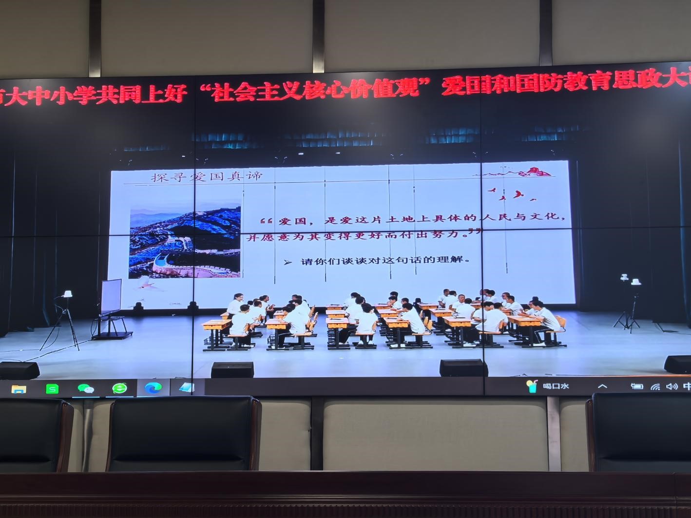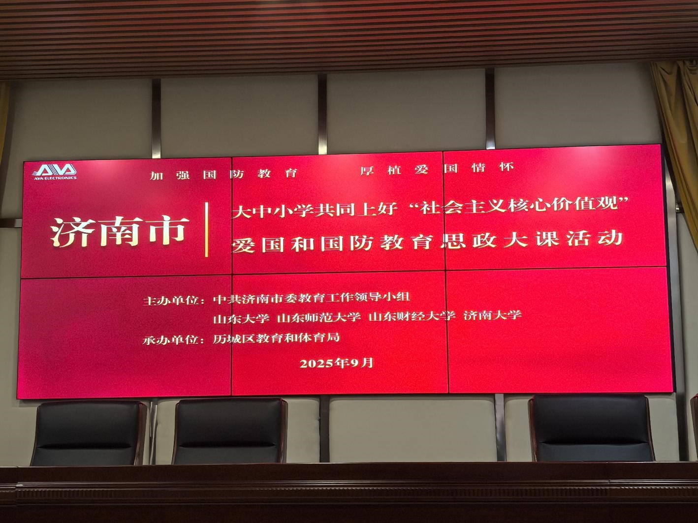 2025年9月23日上午,由中共济南市委教育工作领导小组、山东大学、山东师范大学、山东财经大学、济南大学主办,历城区教育和体育局承办的大中小学共同上好“社会主义核心价值观”爱国和国防教育思政大课活动在历城二中彩石校区举办。王尽美思政教育学院教师在学校第二会议室集中进行线上观看。