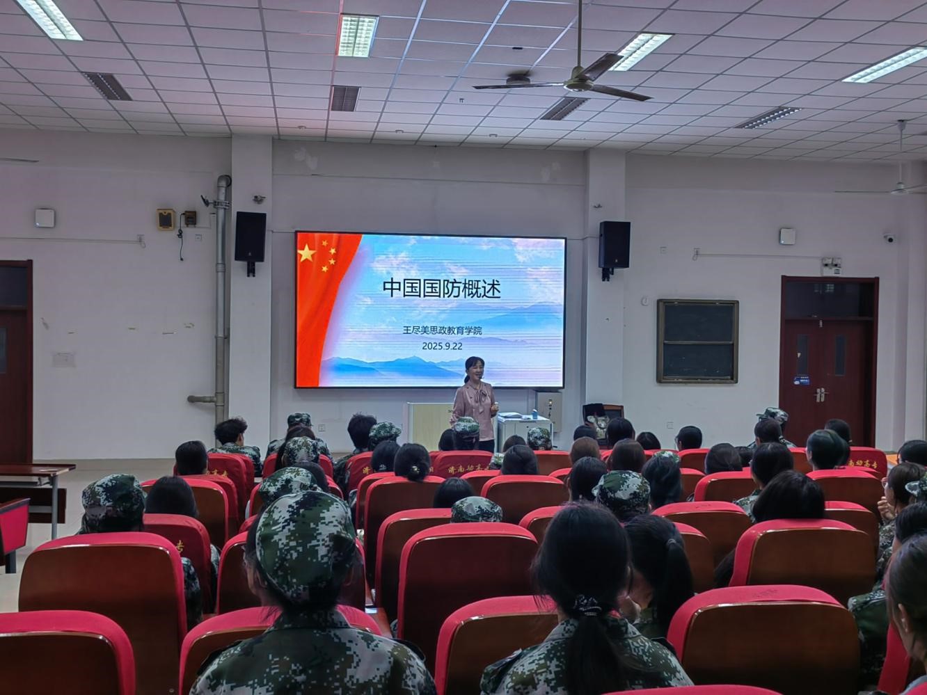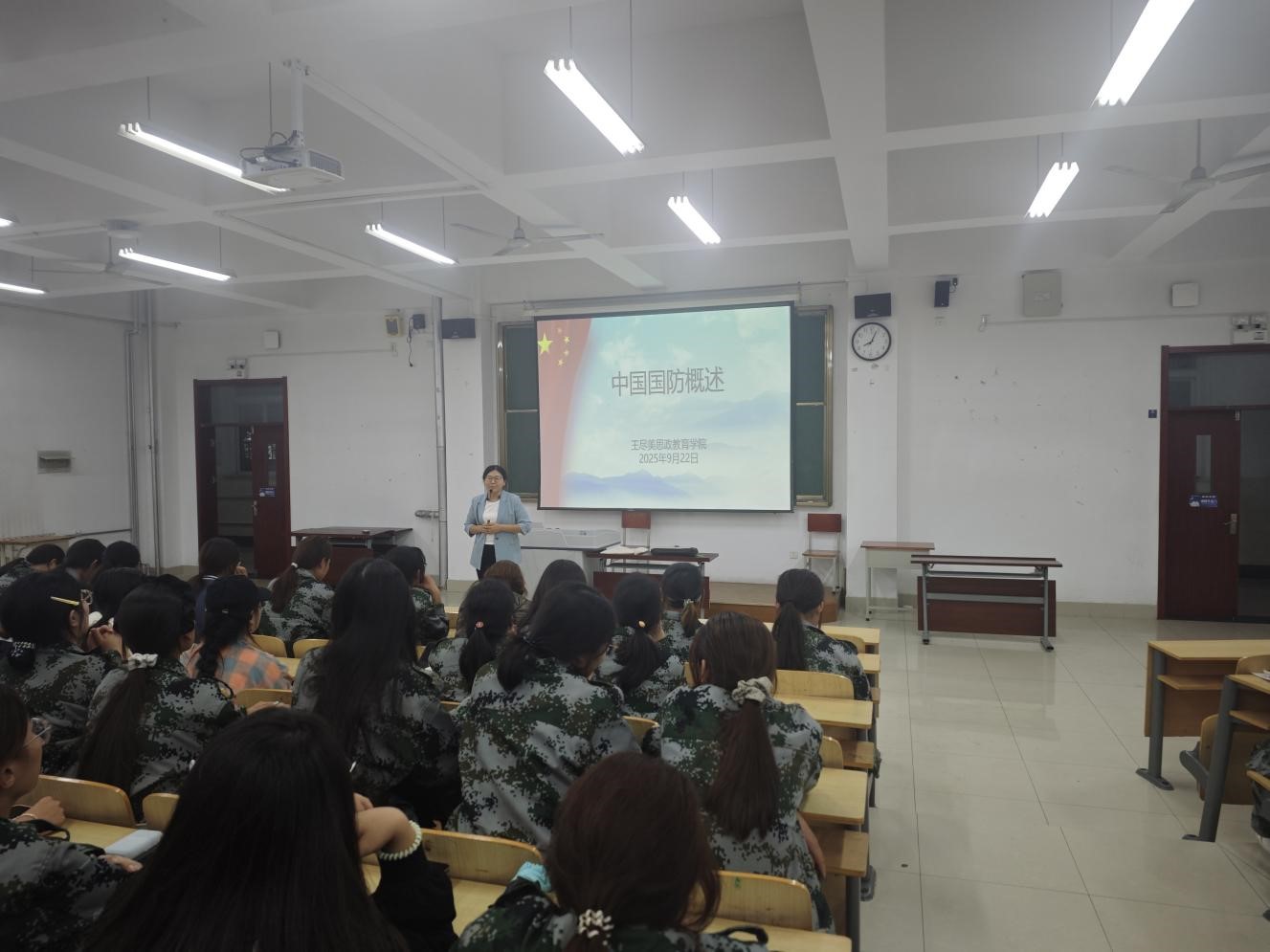 在9月全民国防教育月,2025级新生军训如火如荼进行之际,我院军事理论课程团队在9月22日至23日晚上面向新生进行国防教育授课。本轮国防教育紧紧围绕“弘扬抗战精神共筑国防长城”这一主题展开,旨在深化新生对国家安危、国防建设的认知,强化国防观念,激发爱国热情。