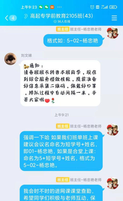 3月30日,学校启动线上教学的第一天,班主任老师召开线上班会和班委会,强调了疫情防控期间学生要理解学校防疫政策,调整心态,有序安排好自己的学习生活,班干部要发挥带头作用,全班要建设好团结稳定的安全网。
