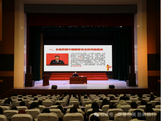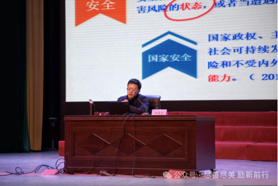 李海龙教授以总体国家安全观为核心,用风趣幽默的语言,结合学生们的专业属性,对当前的国际局势、安全形势、热点问题进行了深入详细的阐述。一方面提出,在全面把握中国国家安全的风险挑战中,作为大学生应了解国家安全,认识“世情”“国情”“党情”的发展,明晰国家安全的重要性。另一方面,李海龙教授从坚持党的绝对领导,完善国家安全制度体系;坚持以人民为中心,把人民安全放在最高位置;推进国际共同安全,塑造良好国家安全环境;夯实国家安全底线,坚决捍卫核心利益四个方面对科学构建中国特色国家安全战略进行了细致讲解。现场氛围热烈,师生兴趣浓厚。