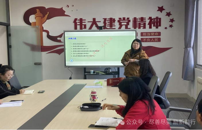 随后,刘雅稚、王婧文两位教师分享了她们在职业院校“金师”建设暨教学能力提升培训中的体会。刘雅稚老师从青教赛备赛主题进行分享,将做好教学比赛凝练为“广、深、高、细、熟、熬”六个阶段,为我们解读了一堂好课的十个要素,并分享了讲课比赛的技能技巧。