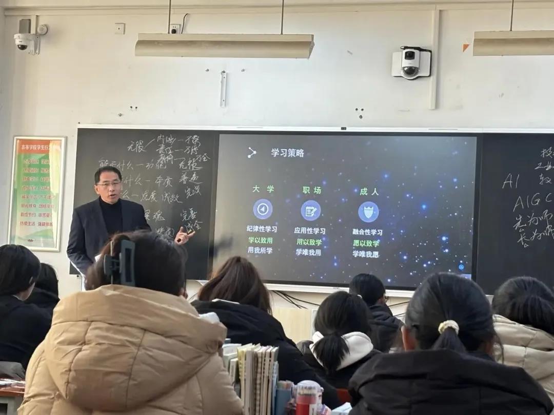 在“教育/教师”部分,成书记以柏拉图哲学思想为起点,向同学们详细阐述了古代教育的本质和现代教育的发展。同时指出在“算法为王,兴趣为主”的人工智能时代,教育的地位以及教师的职责既面临巨大的挑战又面临新的机遇,需要我们辩证看待,协同共度,开辟教育发展新赛道,塑造教育发展新优势。
