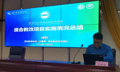 在听取了各位老师的汇报后,优慕课在线教育科技(北京)有限责任公司项目负责人徐利老师基于后台统计的数据,对混合式教改的阶段性进展情况作出针对性的点评和改进指导。