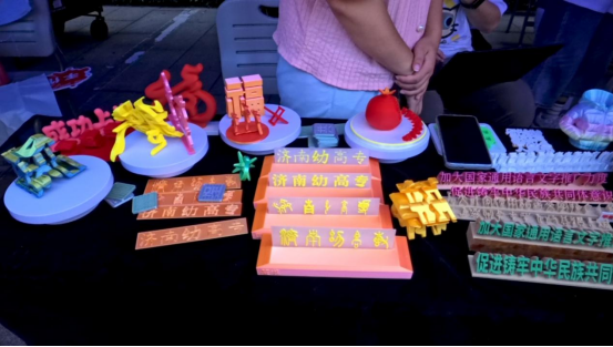 科技赋能,童创筑梦。教务处赵永勤老师带领 “童创梦工坊3D打印社团”,以普通话为交流载体,现场演示多种字体立体模型、推普标语立体打印以及错位字等互动项目,让参会者在体验科技魅力的同时,强化普通话规范使用意识,展现学校“科技+语言” 的创新推广模式。