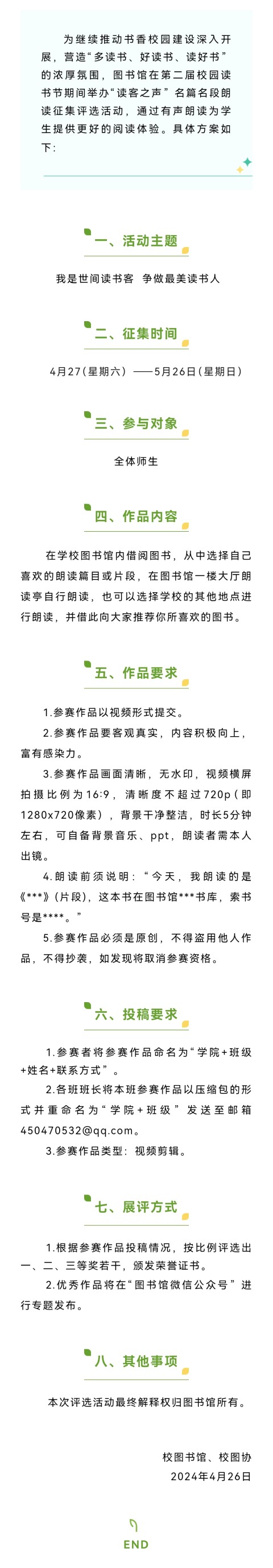 第二届校园读书节系列活动之四:“读客之声”名篇名段朗读征集评选