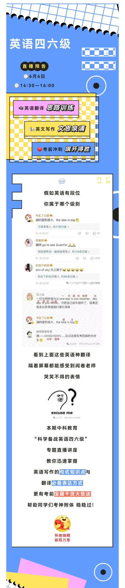 中科教育讲座预告:英语四六级考前冲刺之写作翻译篇