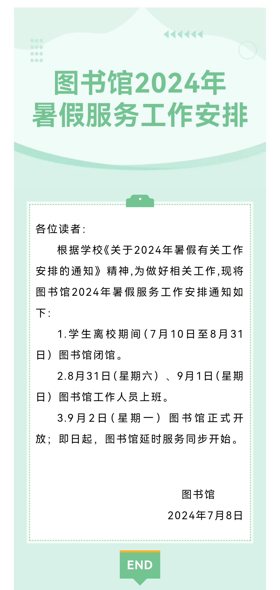 图书馆2024年暑假服务工作安排