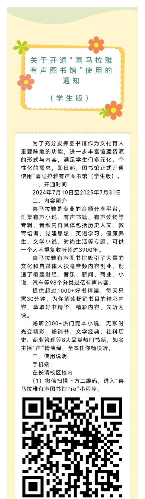 关于开通“喜马拉雅有声图书馆”使用的通知(学生版)