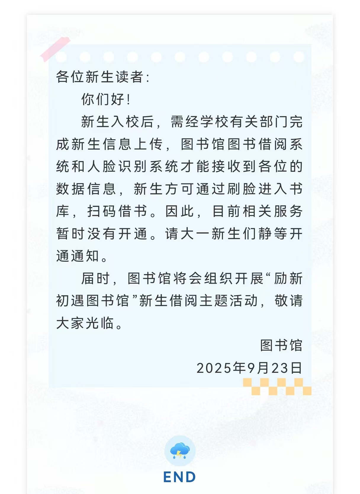关于新生入馆借阅图书的通知