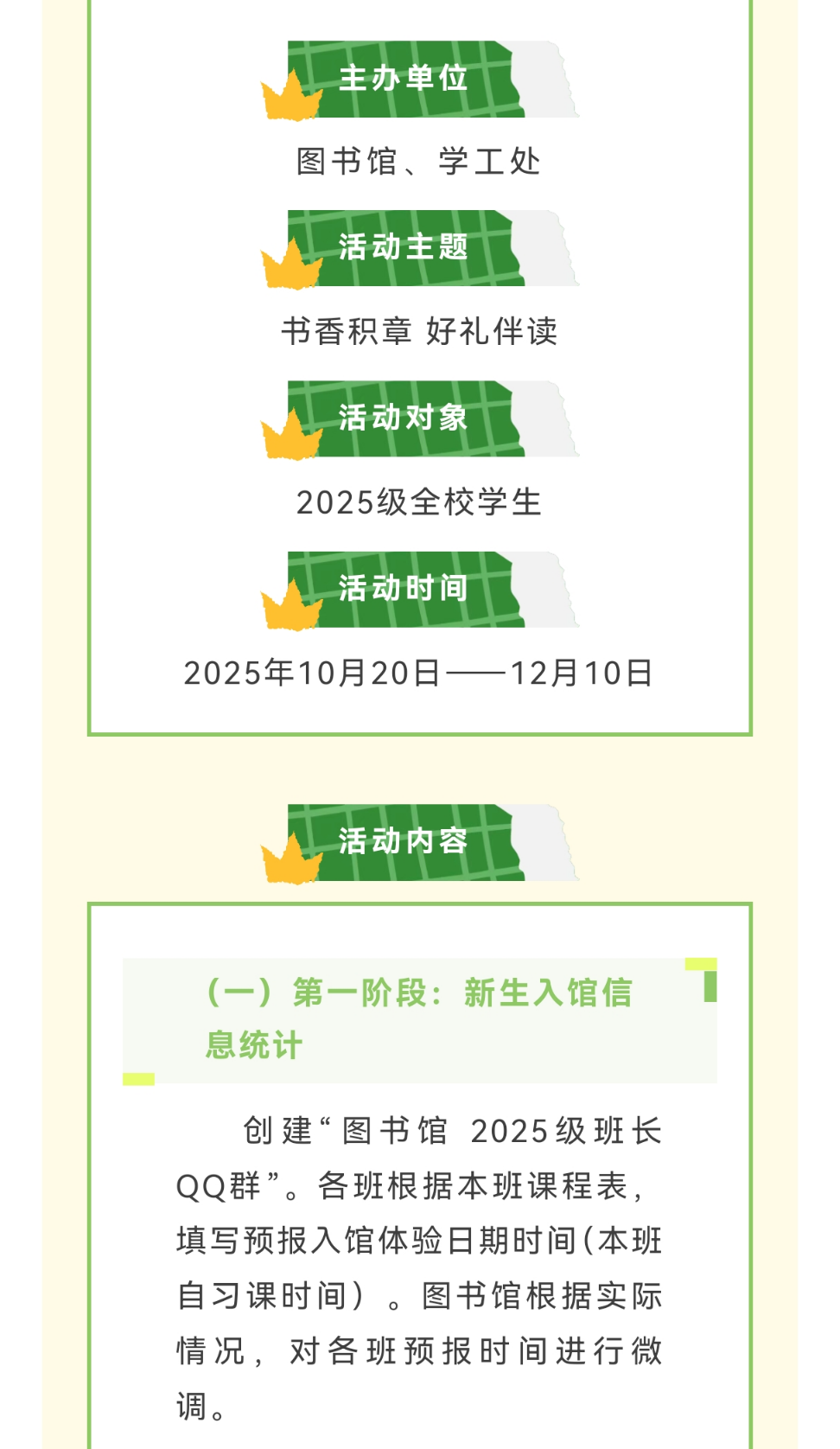 “书香积章 好礼伴读”2025级新生入馆教育活动方案