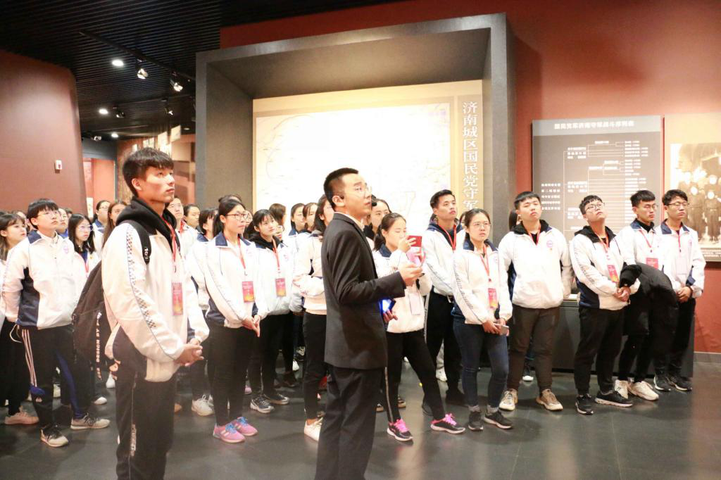 今年是济南战役胜利七十周年。济南战役拉开了全国解放战争战略决战的序幕,它在解放战争史上具有重大意义。一幅幅图片,一件件实物,广大学员通过认真聆听讲解员的讲述和观看济南战役全景图,深深地被革命烈士们前赴后继、英勇无畏和人民群众奋勇支援前线的英雄事迹所震撼,真正领会了“人民的胜利”的深刻含义。巍然矗立在英雄山顶的革命烈士纪念塔,不仅是光荣历史的见证,也是激励后人奋进的丰碑。在纪念塔前,全体学员面向团旗重温入团誓词,激励广大学员在新时代勇担青春使命,争当出彩新青年。
