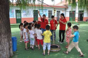 志愿者们走进大庄镇中心幼儿园,了解乡镇学前教育的发展状况。大庄镇中心幼儿园是大庄镇最好的一所公办幼儿园,同学们的到来得到了幼儿园园长及全体教师的热烈欢迎。