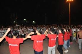 夜幕降临,这是此次活动的最后一个晚上。志愿者们来到大庄镇群众文化广场,为当地百姓奉上了精心准备的文艺节目,以此表达对老区人民的真诚谢意和崇高敬意,同时也为本次实践活动画一个圆满的句号。精彩的演出赢得了大庄人民的热烈欢迎,吸引了众多的观众。观众把表演区域围了个水泄不通,拍摄闪光灯此起彼伏,音乐声、掌声、喝彩声和学生志愿者们青春灿烂的笑脸交相辉映,形成夜晚广场上最亮丽的风景线,热烈的气氛将本次“三下乡”活动推向了高潮。