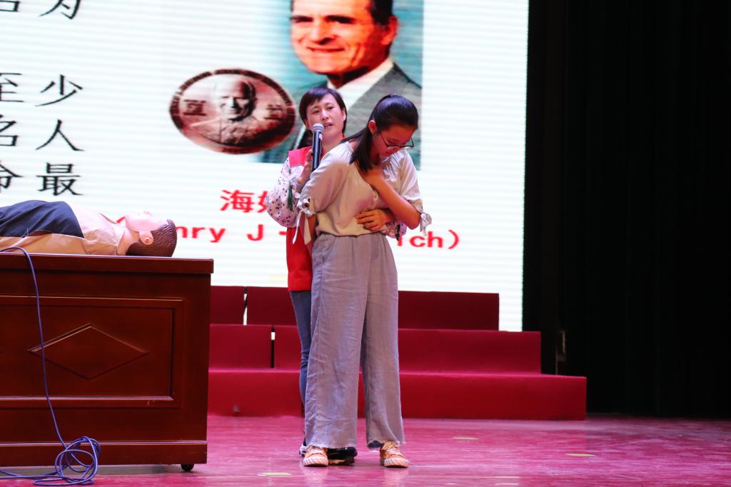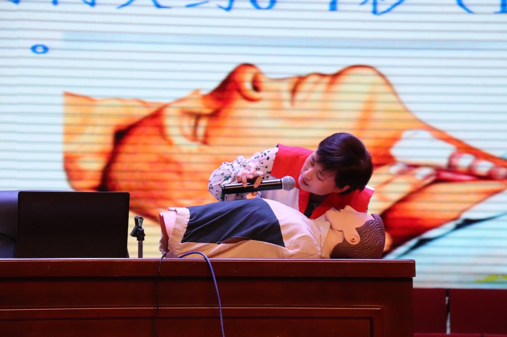 在培训过程中,济南市红十字会王老师为志愿者们生动讲解了判断意识、人工呼吸、胸外按压、创伤包扎、气道梗塞、AED的使用方法等相关的急救知识,并利用仿真模拟人,进行了心肺复苏急救的现场演示。针对我校学生专业特点,王老师还为大家讲授了排除异物梗阻的方法,细致演示了成人和小孩异物梗阻排除的操作技巧,并且与学生现场演示互动。整个培训现场的学习气氛积极而又热烈,取得了较好的效果。