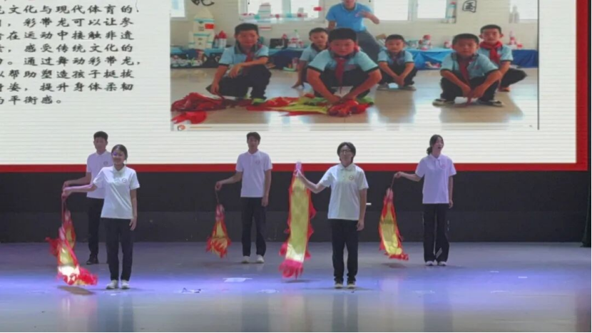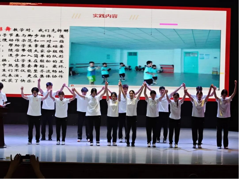 汇报现场,“童心筑梦”志愿服务团别出心裁,以情景剧为表现形式,鲜活复刻了在马山中心小学的实践点滴。志愿小老师们将体育专业的理论精髓与课堂实操紧密结合,用灵动的演绎带领观众“沉浸式”走进热闹非凡的乡村课堂——从初入校园时的好奇探寻,到与孩子们朝夕相伴、缔结深厚情谊的温情片段,每个场景都饱含真挚的感动,每处细节都尽显青年学子的使命与赤诚。