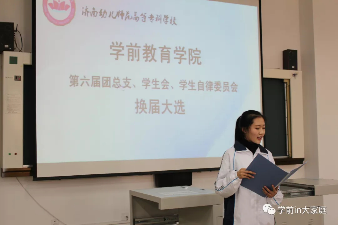 为更好地为学生服务,提高学院党总支领导下各学生干部的工作能力,11月14日下午一点半,济南幼儿师范高等专科学校学前教育学院第六届团总支、学生会、学生自律委员会换届选举在第四阶梯教室隆重举行!