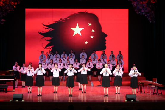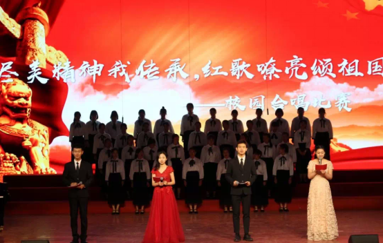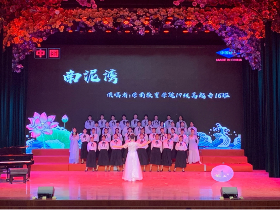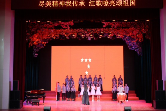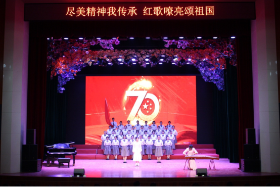 七十年风雨兼程,七十年砥砺前行,舞台上的2019级学前学子们风华正茂、意气风发,用歌声带我们回顾了祖国雄起的光辉历程。《红旗飘飘》歌颂了一份自豪,一种骄傲;《精忠报国》表达了为国家牺牲一切的赤诚;《映山红》诠释了对红军英雄的无限热爱;《南泥湾》歌颂了开荒建功的八路军战士;《我们走在大路上》唱响了新世纪的希望……一首首歌,让人心潮澎湃;一首首歌,让人热血沸腾。唱响红歌,唱响中华,回味经典,展望未来,祝愿我们的祖国迈步前进,永创辉煌!