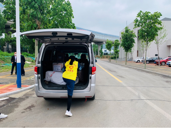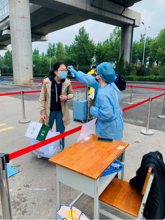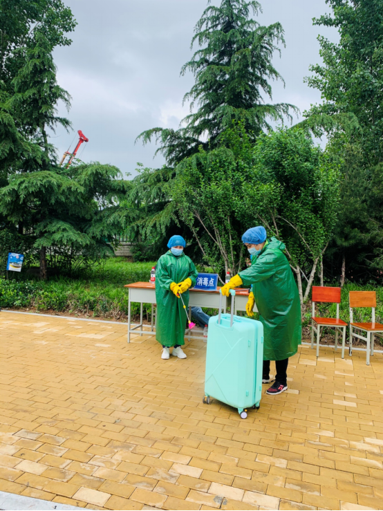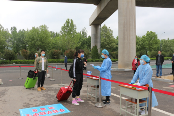 “同学你好,欢迎返校!”成为老师们对学生说得最多的一句话。返校学生有序排队,班主任和副班主任在校门口迎接同学们,进行体温检测,体温无异常且物品消毒后方可进入校区。学生在校内引导员的指引下,按照指定路线到达宿舍整理个人物品。同学们的大件行李经过消杀后,由学院教师志愿者统一运送至学生公寓。