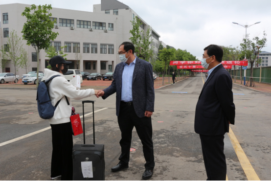 上午8:00,党委书记武善欣、校长李海平早早地来到学校东大门,等候幼高专学子们的归来。8:25,武善欣书记和李海平校长亲自为学前教育学院第一位“3+4”毕业年级返校学生闵晓艺送上精美的返校复学礼物作为纪念。