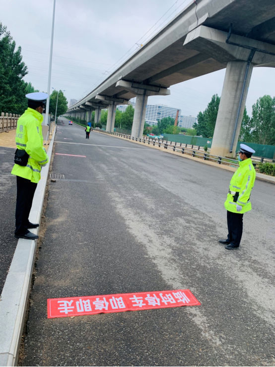 交警在路口协助返校工作