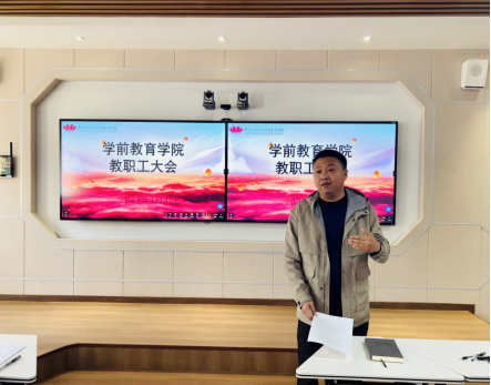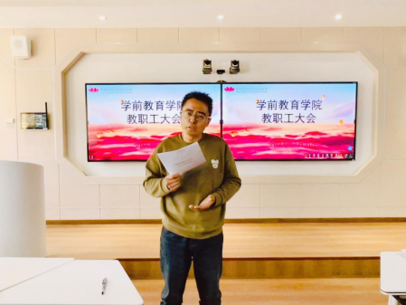 2023年3月30日下午,学前教育学院召开全体教职工大会,会议由副院长张大明主持,全体教职工参加会议。