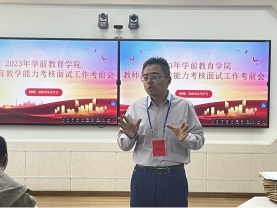 为加强学前教育专业建设,提高师范类专业人才培养质量,提升师范生教育教学能力水平,根据《教育部关于印发<教育类研究生和公费师范生免试认定中小学教师资格改革实施方案>的通知》(教师函〔2020〕5号)文件精神,依据《学前教育学院幼儿园教师资格认定教育教学能力考核方案》,在完成前期过程性材料审查的基础上,我院于4月27日至28日两天,组织了2023年学前教育专业幼儿园教师资格认定教育教学能力考核工作,共有来自学前教育专业的318名考生参加笔试、567名考生参加面试。