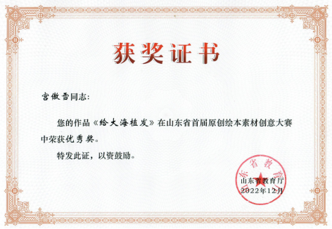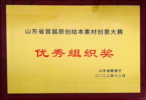 为推动学习贯彻习近平新时代中国特色社会主义思想主题教育扎实深入开展,传承弘扬中华优秀传统文化,深入推进全环境立德树人,鼓励优秀儿童图画书创作者,探讨原创儿童图画书创作思路与实践路径,去年8月,山东省教育厅举办了山东省首届原创绘本素材创意大赛,全省共五千多件作品参赛。我校积极组织师生参加比赛,共有三十四件作品入围,学前教育学院宫傲雪同学获得优秀奖,我校获得组织奖。