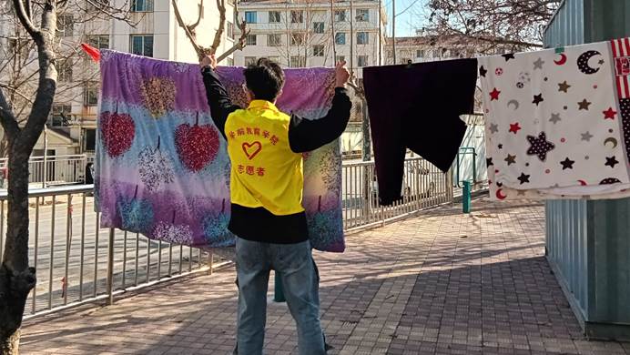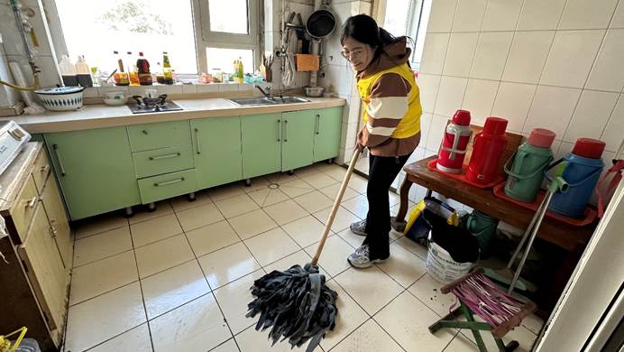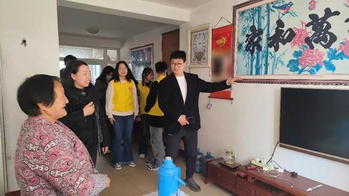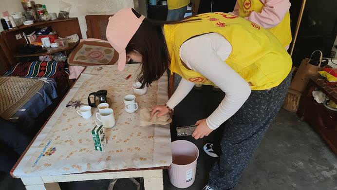 在社区负责人与学院老师的带领下,志愿者们怀揣着饱满的热情前往独居老人家中,开展卫生清洁工作,帮助他们逐一归置桌面物品、清洁门窗、垃圾、打扫地板。学生们关心老人们的生活情况和身体状况,叮嘱他们注意身体,切实提高他们的获得感、幸福感和安全感。