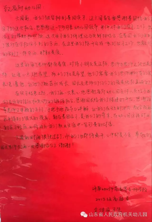 座谈会即将结束时,实习生代表给我园送上了感谢信。王萍园长希望同学们在以后的教师生涯中,准确把握自己的定位,以积极的态度、饱满的热情谱写自己人生的新篇章。