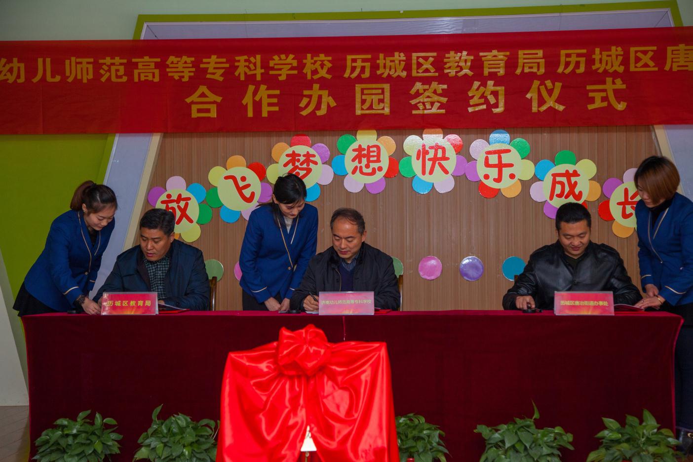 经过认真论证和友好协商,日前济南幼儿师范高等专科学校(幼教集团)与历城区教育局、历城区唐冶街道办事处签署合作办园协议。根据协议规定:历城区教育局所属、由唐冶街道办事处投资建设的唐冶幼儿园,通过所有权不变更、管办分离、自主经营的合作办园模式,无偿转交济南幼高专幼教集团,由幼教集团委派专业管理团队负责经营管理,并接受历城区教育局的监督指导。