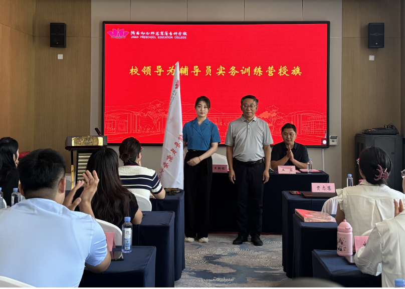 辅导员实务训练营于授旗仪式中正式开始。王新程为本次训练营的学员代表授旗,新入职辅导员何昭君代表全体学员接旗。学工处处长王岩介绍了本次辅导员实务训练营的工作方案,同时针对培训要求,提出几点期望,希望大家能勤思善研、及时总结学习成果,并倡导大家积极协作,主动实践,真正做到学有所思、学有所获、学有所得!辅导员代表王成森进行发言,他表示,将珍惜这次宝贵的学习机会,认真听讲、积极思考、勤于实践,将学到的知识和技能应用到实际工作中去,秉持“立德树人”的教育理念,以满腔的热情和不懈的努力做好学生的知心朋友和人生导师。