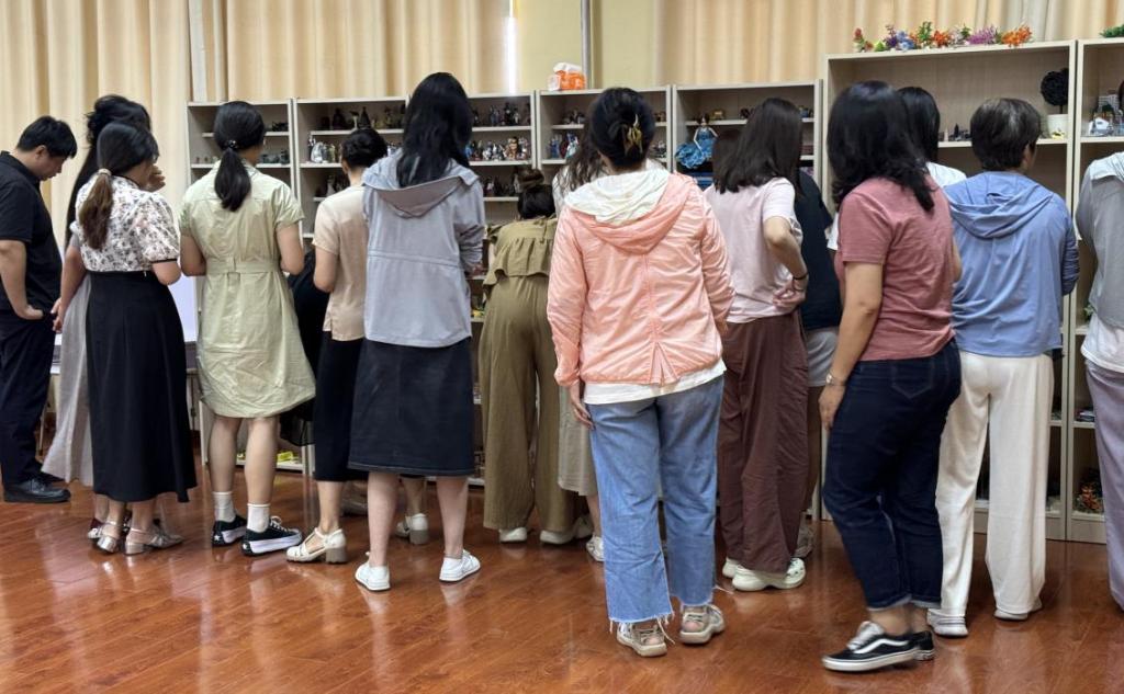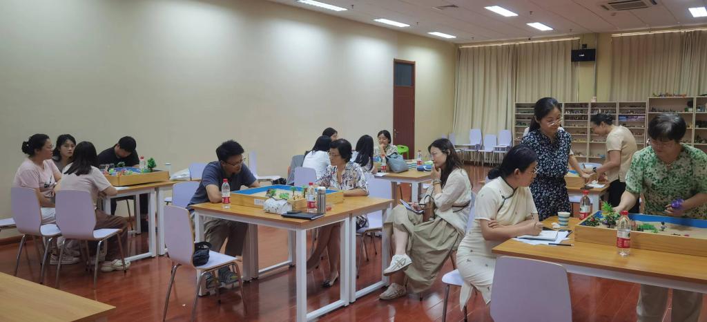 本次培训通过现场教学、个体体验等形式进行。鲁老师首先为老师们讲解了沙盘游戏的来历、分析原理、基本过程等知识,并通过实际案例带领大家将理论知识运用到实践操作中。在体验环节中,老师们在沙具架上自由挑选玩具、摆放到沙箱中,通过“无意识意识化”的过程获得了心灵的启发和成长,感受到了自我探索和自我治愈的力量。