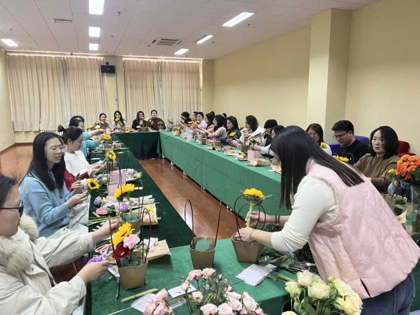 活动邀请了我校儿童阅读研究所工作室成员,与辅导员老师共话科研,同时邀请具有丰富经验的插花老师为大家详细讲解插花相关知识,辅导员老师们在轻松愉悦的氛围中学习进步,共度妇女节。